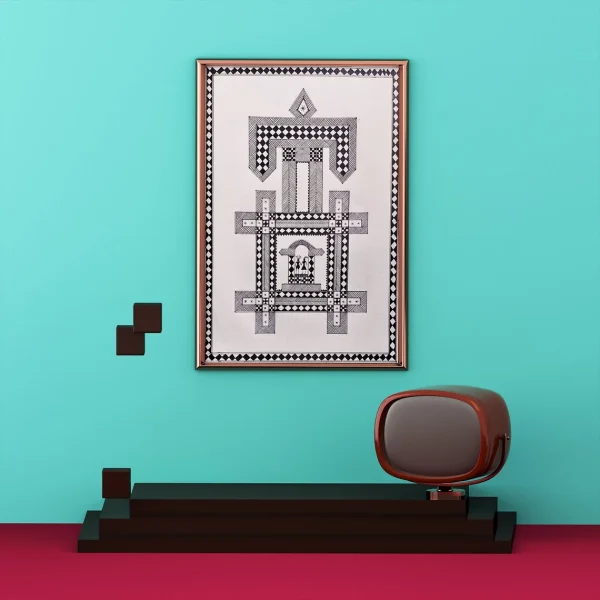 Art Collectors, Authentic Folk Art, Canvas, Chittara Folk Painting, Cultural Art, Festival Decor, folk art, Folk Art Decor, Folk Art Enthusiasts, Geometric Folk Art, Geometric Patterns, Hand-painted Art, Handcrafted Tribal Art, handmade painting, home decor, Home Decor Lovers, indian folk art, Indian Tribal Art, Intricate Designs, Karnataka Art, Living Room Art, Natural Colors, Paper, South Indian Art, South Indian Paintings, Symbolic Art, traditional art, Traditional Tribal Art, Tribal Art, Wood