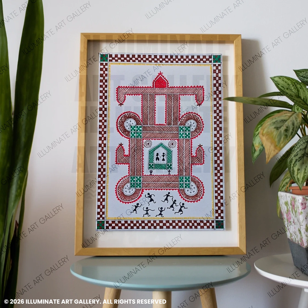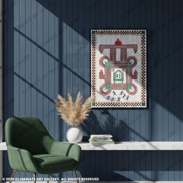Art Collectors, Authentic Folk Art, Canvas, Chittara Folk Painting, Cultural Art, Festival Decor, folk art, Folk Art Decor, Folk Art Enthusiasts, Geometric Folk Art, Geometric Patterns, Hand-painted Art, Handcrafted Tribal Art, handmade painting, home decor, Home Decor Lovers, indian folk art, Indian Tribal Art, Intricate Designs, Karnataka Art, Living Room Art, Natural Colors, Paper, South Indian Art, South Indian Paintings, Symbolic Art, traditional art, Traditional Tribal Art, Tribal Art, Wood
