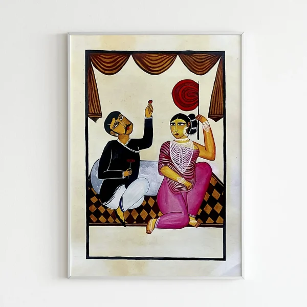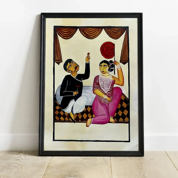 - Evolution and Legacy: While traditional Kalighat paintings were primarily done on paper or cloth, contemporary artists have adapted the style to various mediums. Despite changes, the essence of Kalighat art endures, and these paintings continue to be appreciated for their cultural and historical significance. The Babu-Bibi style adds a touch of satire and humor, offering a glimpse into the aristocratic life of that era.