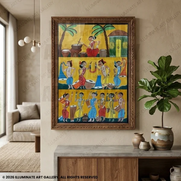 - Cultural Storytelling Tradition: Rooted in the ancient tradition of storytelling in India, Santhal paintings beautifully narrate the tribal life’s celebratory aspects. With bright eyes and lively body language, these paintings capture the essence of Santhal fairs and festivals, providing a delightful visual representation of their rich cultural heritage.