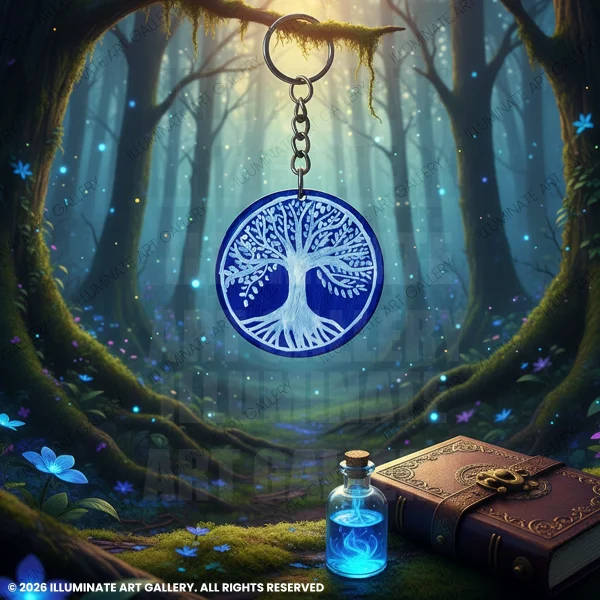 Tree of Life Wooden Keychain | Hand-Painted Blue Art Keychain